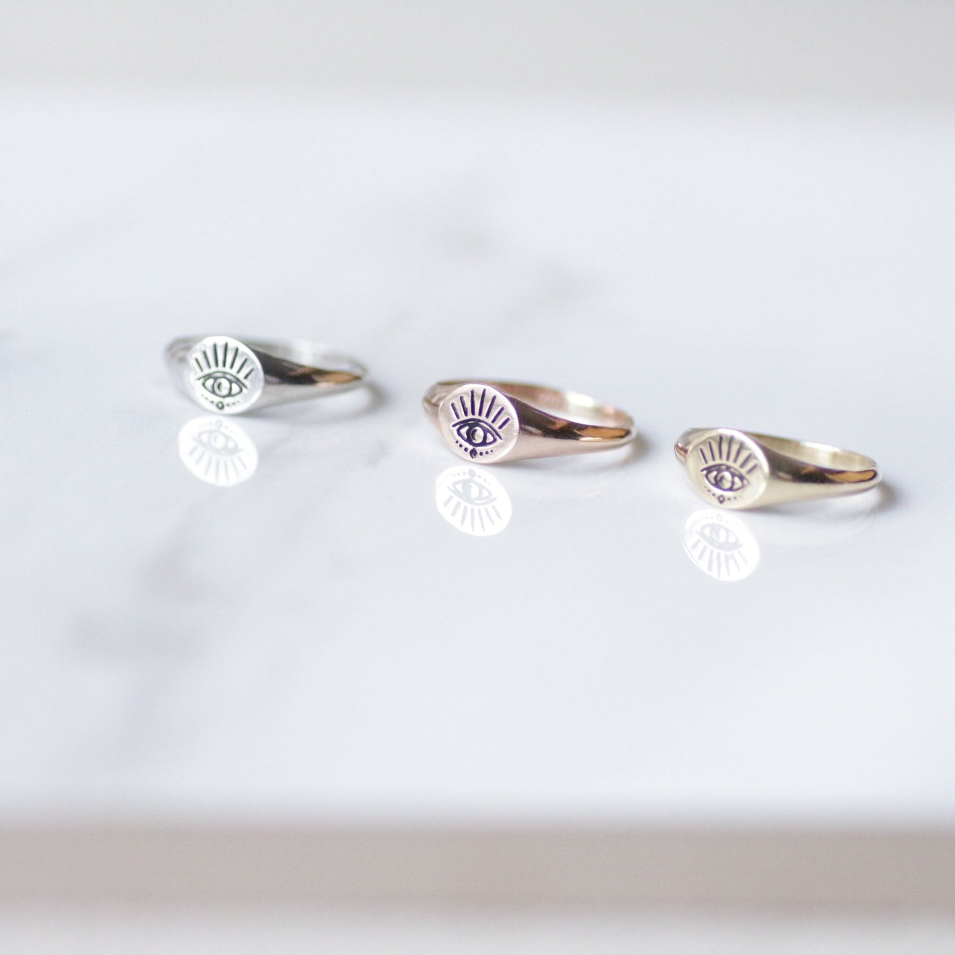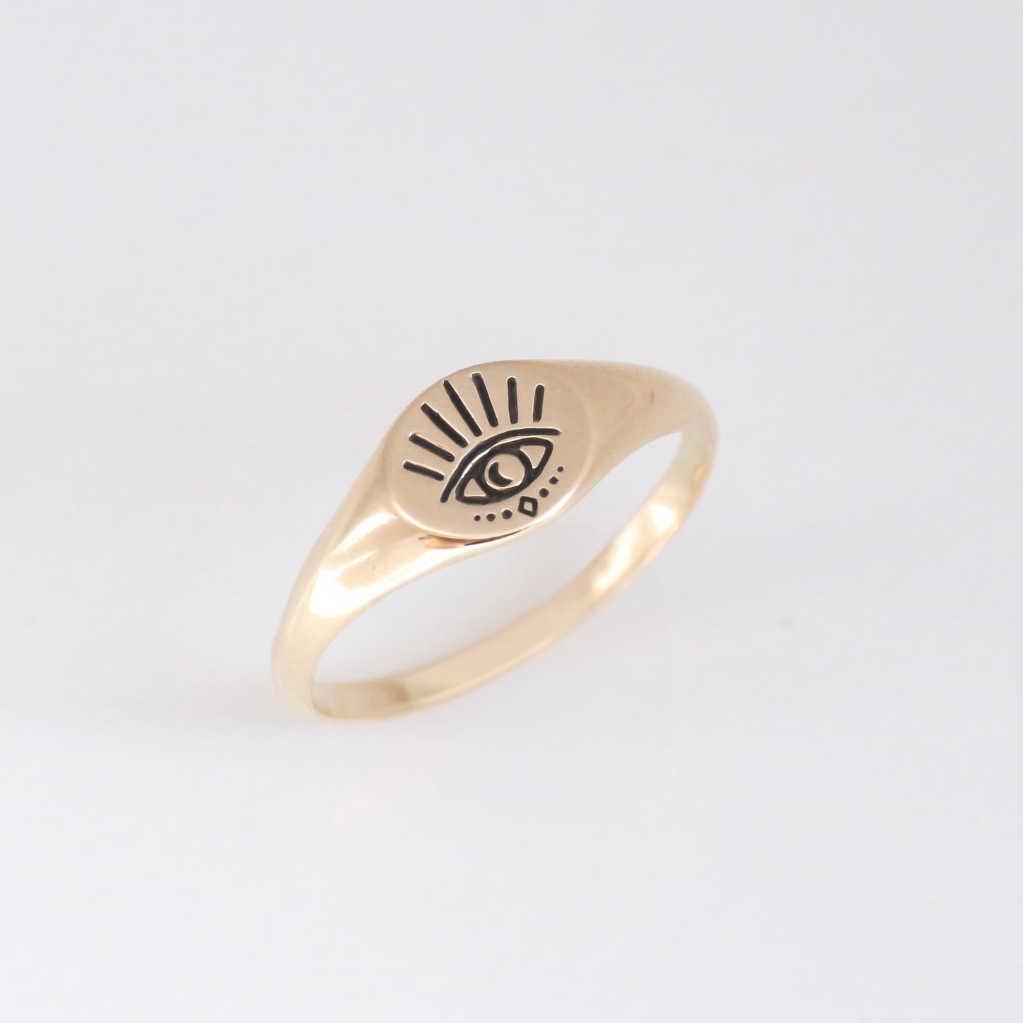 טבעת חותם עם חריטת עין יפיפיה שתשמור עלינו מעין הרע עשויה זהב 14 קראט