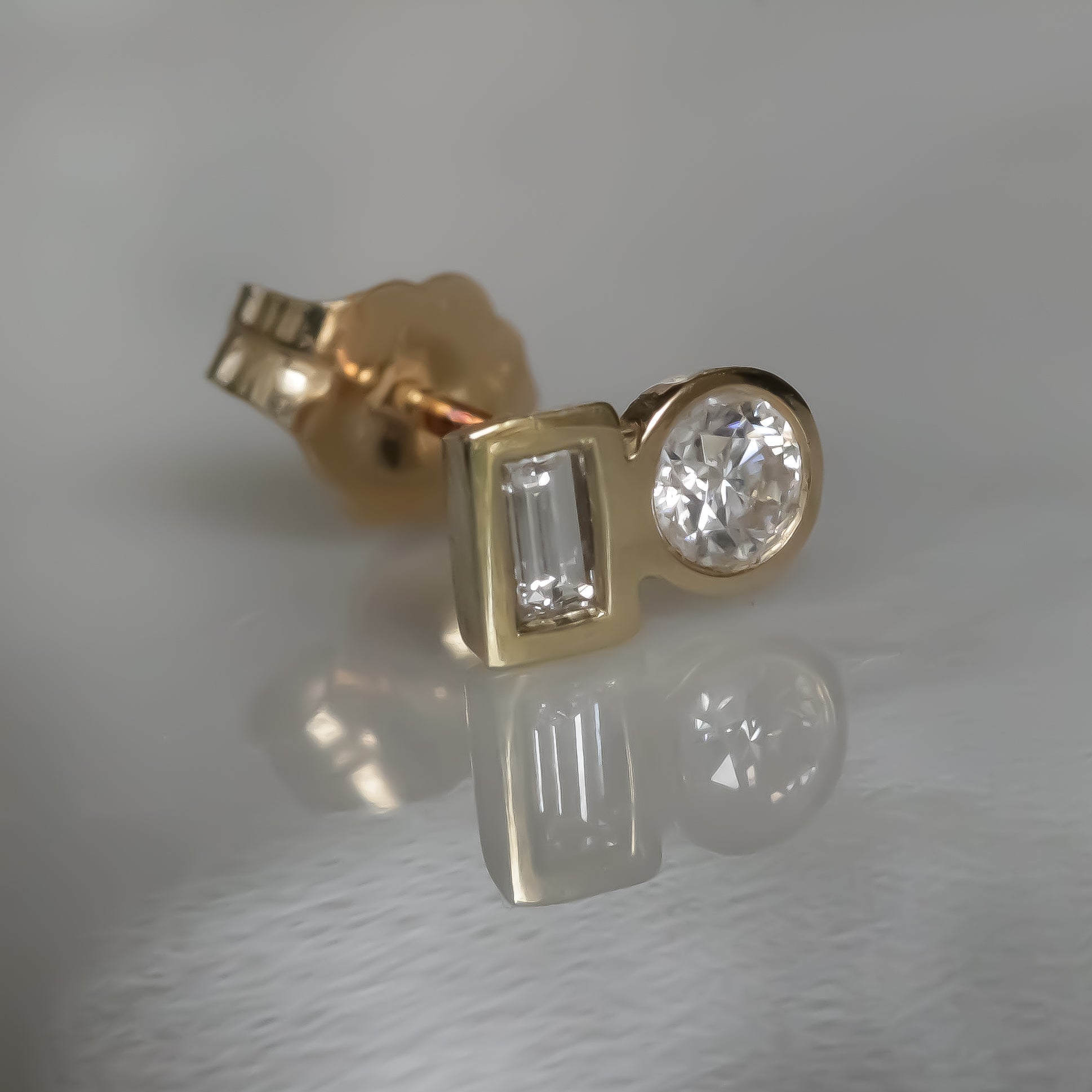 Made from quality 14k gold with a 0.06ct baguette lab diamond and a 0.10ct lab created diamond.