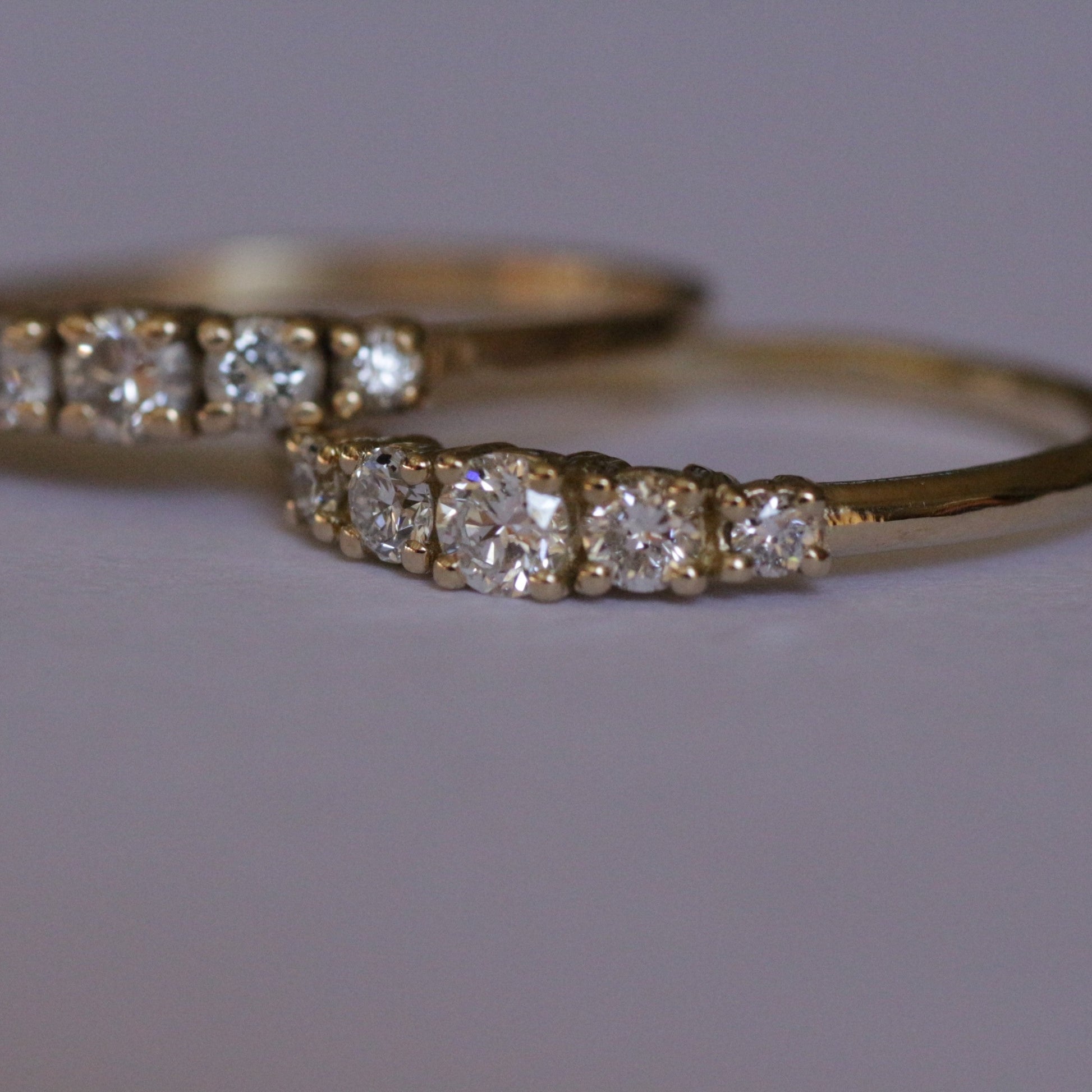 This ring features 5 gorgeous conflict free diamonds! It is the perfect ring to complete any set.