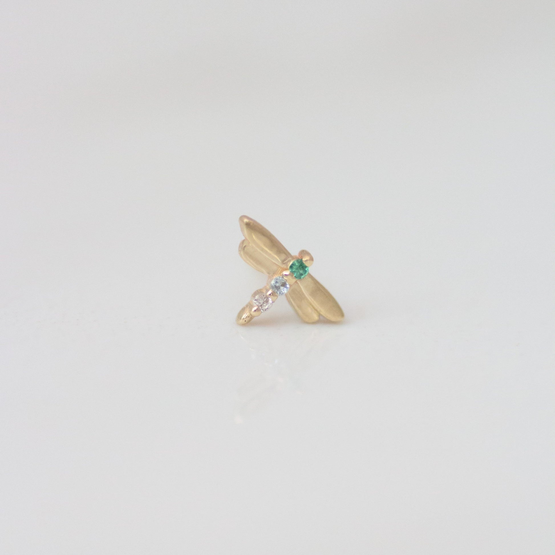 Dragonfly earring stud 14k gold - Emerald