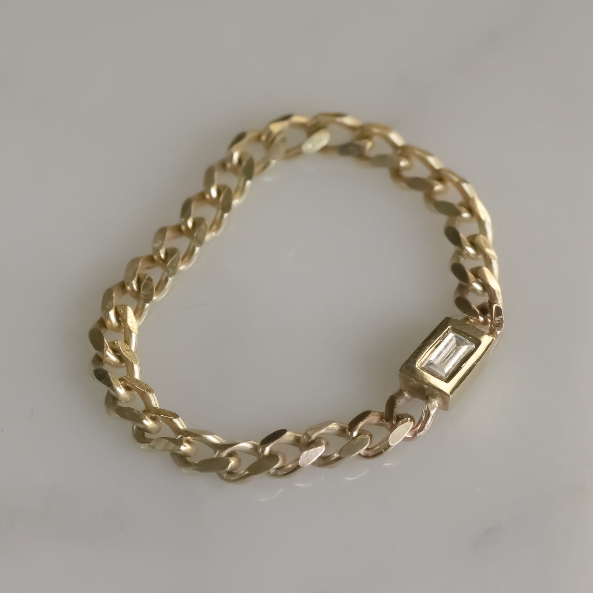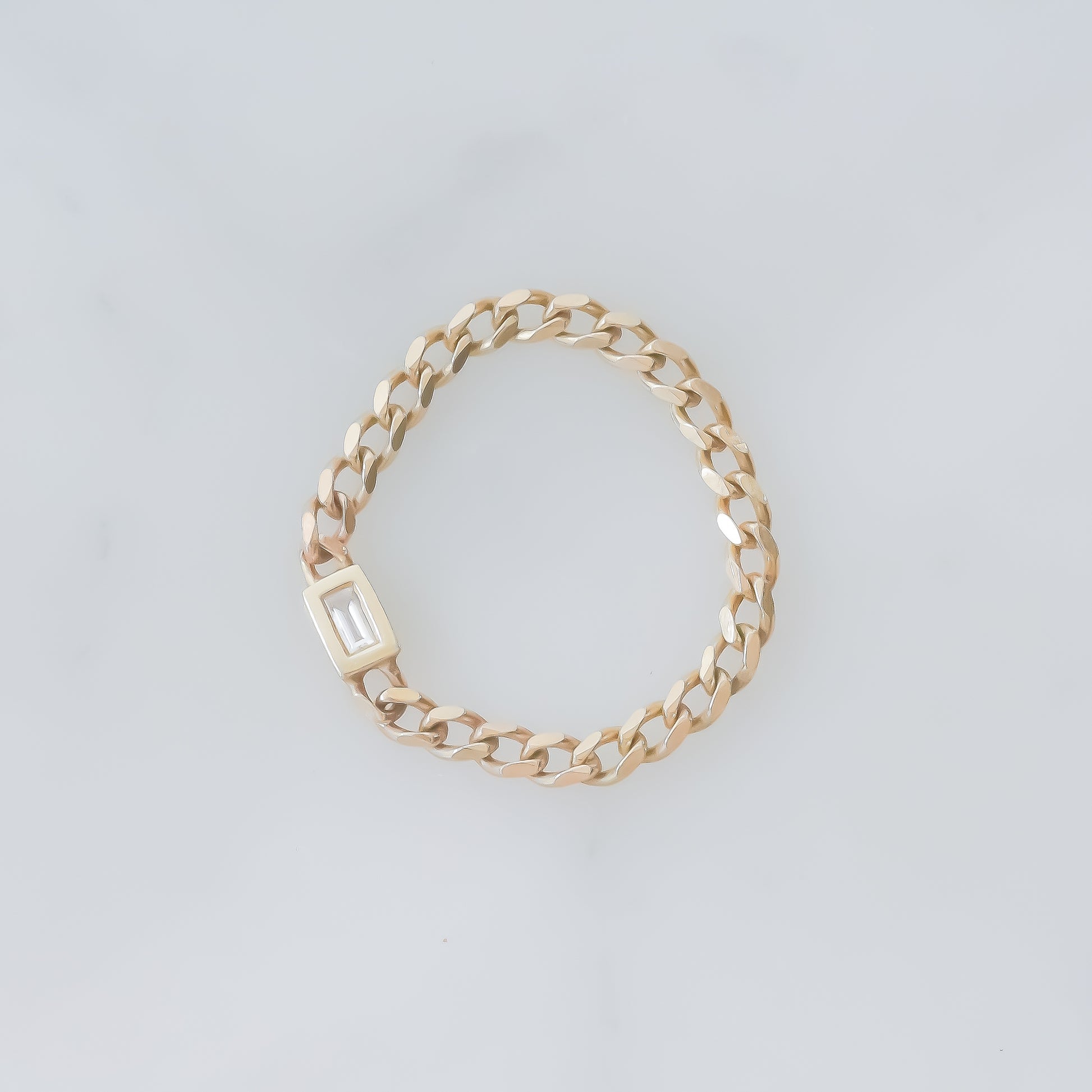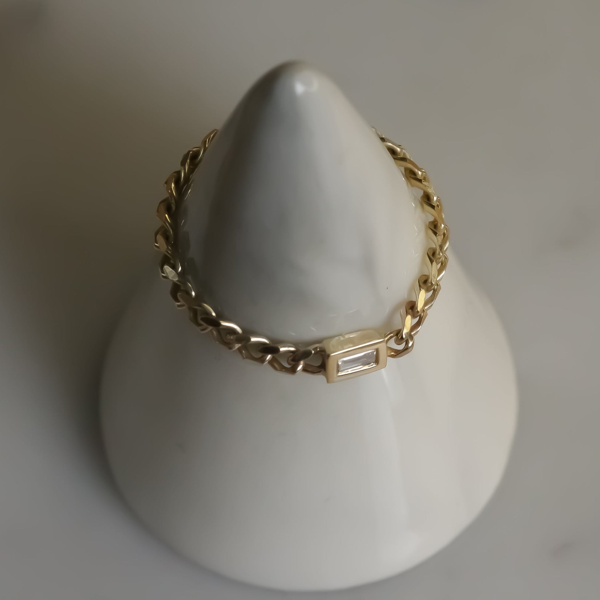 When classic meets trendy! A gorgeous baguette lab diamond combined with a gourmet chain making this unique ring a must have.