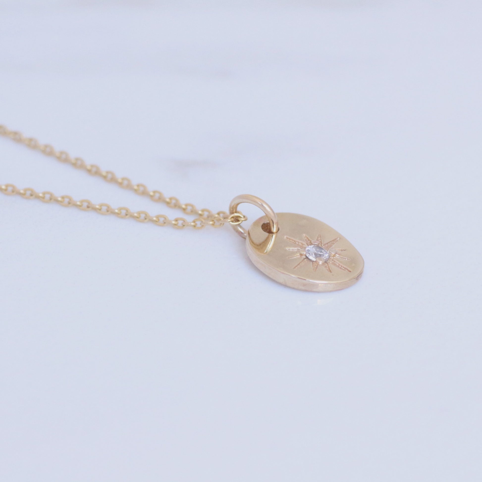 Our Northern Star diamond necklace features a gorgeous sparkly star set diamond in an amorphous oval pendant.