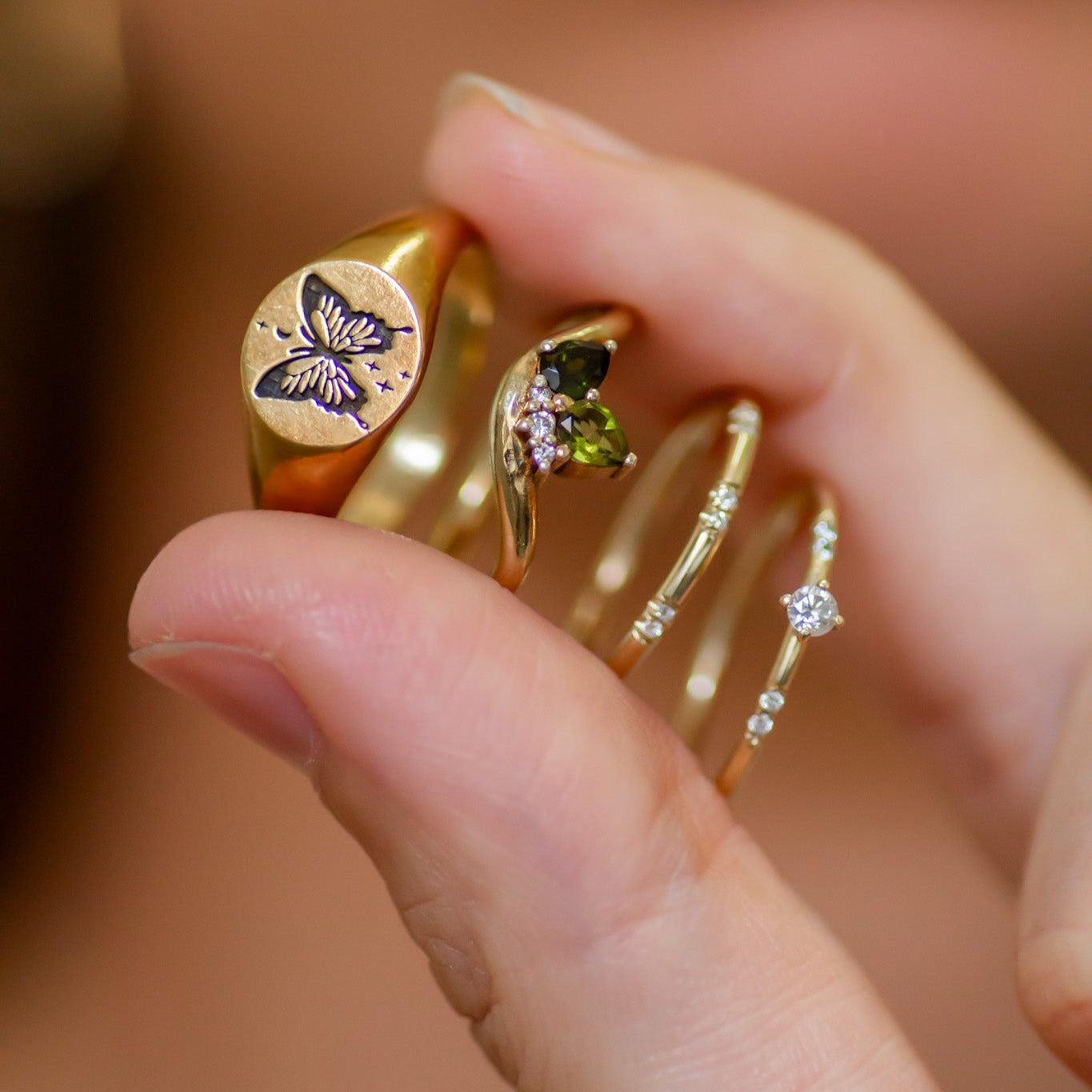 Our jewelry is set with a variety of natural gemstones and top quality lab created and natural diamonds.